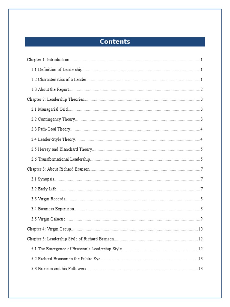 Leadership sir richard branson the creator, ceo and chairman of virgin and its corporate culture has a very unique approach to leadership. Richard charles nicholas branson was born on the 18th of july 1950 in blackheath, london. Richard branson transformational leadership rating: The differences in personal styles are evident in the fact some leaders are extraverted and loud while others tend to be analytical and subdued. Assess the key elements of richard branson's leadership style and the impact that those elements have had on his business success. Moreover, taking sir richard branson as a living example, of such a leadership style, this research discusses his style and sees him as the transformational leader. He is successful in building 400 companies under the brand name of virgin. This paper is aimed at assessing the leadership offered by richard branson, the founder and leader of virgin group. Unpredictable—that pretty much sums up richard branson as a person. Branson, often regarded as a dynamic yet colourful entrepreneur is on everyone's mind in some. Be a great leader of people. i like that he reiterates the importance of using the word we instead of i. Branson doesn't like symbols of corporate success and this resulted in no corporate head office , he does most his work at his many homes. Everything i know about leadership.
